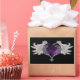Gótico, coração roxo tipo joia, ligeiramente esmagado e um pouco rachado, mas não quebrado com Anjo