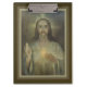 Prancheta dourada bonita do desenhista do coração sagrado de Jesus. O artista teve a grande dificuldade pintar os olhos. Depois que diversas tentativas, ela obstruíram para fora os olhos e se aposentaram para colocar na oração. Quando acordou na manhã, os olhos sagrados do coração tinham sido pintados miraculosa dentro.