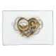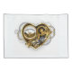 Cardíaco mecânico, volumétrico e steampunk com manômetros de pressão, de aço e de ouro sobre fundo branco. Estilo Steampunk.