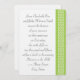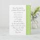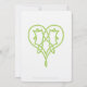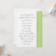 Este elegante convite para o casamento apresenta uma brilhante borda verde peridot ao longo da borda direita do cartão com uma tecelagem branca Celta composta por corações estilizados. A esquerda tem espaço de sobra para todos os detalhes do evento especial com algum texto de exemplo no lugar que pode ser personalizado para ajustado das suas necessidades. Um grande coração Celtic Weave em verde pastel adornou as costas para adicionar um toque final de classe. Certifique-se de verificar os outros produtos no Celtic Weave Hearts in Peridot para criar uma busca verdadeiramente coordenada pelo seu evento.
