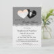 Um convite para chás de casamento único com vestidos de noiva em forma de coração e um smoking do noivo no fundo do coração da cinza acentuou-se com uma fronteira de renda de ornamentado. Peças coordenadas disponíveis em armazém. criado com o trabalho original de arte ©BELDS-doodles.com