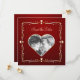Anúncio personalizado de salvar a data com corações dourados em fundo vermelho escuro.