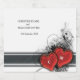 Uma etiqueta de vinho romântica. Dois corações com a noiva e o noivo. Rolos elegantes e flores dão apoio aos corações. Este olhar vai correr bem em qualquer época de casamento, primavera, verão, outono ou inverno. Excelente para um casamento moderno, e perfeito para um casamento clássico também!