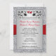 Este convite romântico para o casamento floral de cinzas pretas e prateadas tem uma fita vermelha IMPRESSA com um par de joias de diamante e a brilha vermelha FAUX juntou corações. Também tem uma fornalha FAUX prateada na borda externa com flores de cinza prateada e videiras nela, com um verso na frente que diz "Hoje casado meu melhor amigo, com quem eu rio, sonho, vivo por amor". Este seria um convite perfeito para um casamento no inverno, um casamento Dia de os namorados, um casamento gótico, ou um casamento de Ano Novo. Se precisar de ajuda para personalizar este convite ou se precisar de itens correspondentes para ir com ele, envie uma mensagem de correio eletrônico para niteowlstudio@gmail.com.