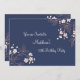 Os 75 Convites de aniversário personalizados no elegante azul marinho escuro, cor de pêssego e estilo japonês branco floresce o padrão de flores antigas. Adicione seu nome e detalhes da festa para um convite de aniversário exclusivo e na moda.