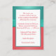 Este cartão de recinto de casamento floral cor-de-rosa coral tropical, verde-teal e branco tem uma fita e laço IMPRESSOS com um par de diamantes IMPRESSOS e corações unidos com brilho FAUX que combina com os convites de casamento mostrados abaixo. Você pode usar isto como um cartão de acomodações, um cartão de registro de presentes, um cartão de poço de desejos, um site de casamento ou cartão de informações, ou um cartão de direções, alterando o texto personalizável para atender às suas necessidades. Se você precisar de outros produtos correspondentes, por favor envie um e-mail para niteowlstudio@gmail.com com sua solicitação.