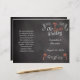 Pêssego de coral fresco e texto de efeito de quadro negro branco com fundo de cinza de ardósia. Celebrar uma cerimônia na orla costeira com esta legal palmeira e um olhar branco esboçado de giz. Boa vintagem rústica em um casamento na praia. Design Copyright © CustomInvitesOnline.com