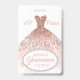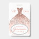 crachá convidado VIP da Quinceañera bonito, com gráficos de um vestido cor-de-rosa-coral e uma área de texto oval enquadrada em diamante, na parte inferior. Personalize o texto colorido do coral para atender às suas necessidades. Excelente para festas de aniversário, festas de solteira, Sweet 16 e mais.