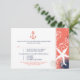 Design moderno e fofo de estrela-do-mar, concha, âncora de veleiro, areia da praia e formas geométricas em uma combinação de tons de coral + branco + azul-marinho ilustrados em cartões de RSVP de casamento personalizados. Divertido compartilhar os cartões de resposta de casamento exclusivos e descolados com tema náutico com seus convidados! Todo o texto de exemplo pode ser totalmente personalizado com sua própria redação, e sinta-se à vontade para alterar os tamanhos, tipos de letra e cores do texto também. ((Você pode encontrar os essenciais e brindes de casamento correspondentes nesta loja, Bridal Heaven. Contate ujean4791@gmail.com para trabalhos personalizados e/ou papelaria de casamento coordenada.))