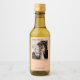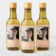 These mini wine bottle labels feature a design that is simple, modern, and minimalist with your photo on a light orange or coral peach background and a caption reading "Love & Thanks" as well as the names of the couple and the wedding date. There is also space for the type of wine or other bottle contents. Perfect for thanking special guests.
