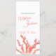 Menu de casamento de cor d'água de coral. Belo cardápio de casamento ideal para um casamento temático no oceano coral. Personalize com seus próprios detalhes de menu. Outros itens de correspondência também estão disponíveis. © Arte de aquarela de coral original e design por Sarah Trett