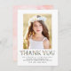 Na moda, primeiro obrigado elegante do aniversário você carda a caracterização de letras das cinzas de carvão vegetal com cora flores da aguarela e acentos verdes da folha. Personalize o obrigado floral do aniversário você cartões adicionando seus mensagem, nome, e foto feitos sob encomenda. O verso do obrigado você carda a característica um fundo da aguarela do rosa da cora.