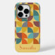 Faça uma declaração design dramática com este design Moderno do século Médio, com formas ousadas de tarte em turquesa, ferrugem, laranja e ouro num fundo amarelo quente e personalize esta capa de telefone com o seu nome.