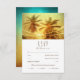 Corda Tropical Palm Tree Light Beach Wedding RSVP. Possui luzes de cordas com belas palmeiras de coco no pôr do sol. RSVPs de casamento náutico excelente para casamentos costeiros ou tropicais. Este convite de casamento RSVP foi projetado por www.superdazzle.com