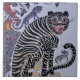 Um "Minhwa" representa o folclore coreano criado por artistas desconhecidos ao longo dos séculos. O leopardo é uma figura associada à cultura coreana e um animal feio ou deformado pode representar aristocratas tolos ou corruptos de acordo com a lenda. Esta minhwa vintage retrata um tigre com três filhotes discutindo com três pincéis.