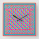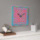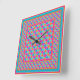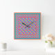 Um Relógio de Parede Quadrado Quadrado, com um padrão tradicional Islâmico em rosa brilhante, laranja, azul turquesa e verde-claro, esboçado em branco; da coleção Posh & Painterly 'Islâmica'.