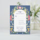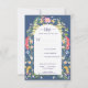 Flores silvestres deliciosas em clara e aquarelas brilhantes estão organizadas em torno do arco central do convite. A caligrafia e as fontes modernas sans serif combinam-se para uma aparência moderna e simples, em harmonia com as flores doces e silvestres. As fontes de tinta azul acentuam ainda mais a sensação selvagem e natural. Colocado sobre fundo de azuis do País. Personalize as fontes, se desejar, mas para reter as hastes na caligrafia, mantenha os símbolos em forma de retângulo. A cor da tinta para a inscrição pode ser alterada dentro da ferramenta design.