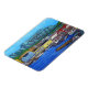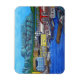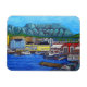 Pintura colorida e estilizada da bela VV&A Waterfront com o majestoso pano de fundo da Montanha Mesa na Cidade do Cabo, África do Sul em um ímã