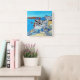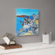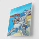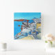 Adicione uma bela cor e design à sua casa com esta pintura vibrante e estilizada de Santorini bonita, Grécia com sua majestosa cúpula azul da artista popular Lisa Lorenz num relógio de na moda.