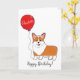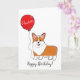 Corgi com cartão de aniversário de balão