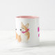 Torne seu chá ou café mais doce com esta caneca fofa com os amigos de Pembroke Welsh Corgi Hattie e Leah, ambos vestindo suas melhores bandanas cor-de-rosa com um padrão ósseo 💕 A caneca pode ser personalizada com seu nome ou sua própria mensagem especial.