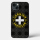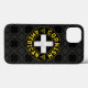 Design de círculo em preto, amarelo e branco, com a bandeira da Cornualha e as placas do Duque da Cornualha. Com o texto Cornish American em torno dele.