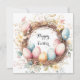 Coroa decorativa colorida de ovos de Páscoa com flores e folhagem
