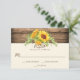 Fundo de madeira de celeiro rústico com coroa de girassóis aquarela vívidos e folhagens RSVP. Personalize com suas próprias informações. Se precisar de ajuda ou quiser este design em outro produto, por favor envie-me um email para shutterbug600@yahoo.com. Certifique-se de incluir o link para este convite na sua correspondência. Convite de casamento correspondente: https://www.zazzle.com/z/ytpj6?rf=238052698351947859