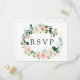 Elegante Cartão-Postal de RSVP de Casamento com uma coroa de flores em aquarela em rosa bege e branco com folhagem verde. Para personalização avançada deste design, clique no botão "Personalizar". Itens correspondentes também estão disponíveis.