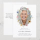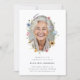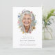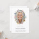 Honre a memória do seu ente querido com este belo anúncio de funeral. Com uma delicada coroa floral ao redor de uma fotografia querida, este design oferece uma maneira suave e elegante de compartilhar a notícia de um serviço memorial. As cores suaves e elementos naturais evocam uma sensação de paz e lembrança, perfeitos para celebrar uma vida bem-vivida. O verso do cartão oferece espaço para detalhes adicionais, como o endereço completo do serviço, informações sobre a recepção ou pedidos de vestimenta.