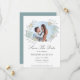 Nossa delicada coleção botânica apresenta folhagens suaves em verde claro, azul-turquesa e dourado em aquarela, combinadas com molduras douradas e fundo azul-turquesa para uma coleção de casamento perfeitamente elegante. Você pode encontrar itens correspondentes para sua experiência completa de casamento, mas também artesanatos, presentes e alguns itens pessoais. Acreditamos que você vai gostar ao máximo, pois é uma coleção para todas as estações. Este cartão de "salve o dia" apresenta sua própria foto em uma grinalda de folhagem azul com todas as informações em letra elegante para você personalizar.