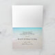Coroa tropical, cartões de Natal cristãos. Cartas dobradas com texto religioso, "paz celestial" na frente e escritura de Isaiah dentro. Personalize a saudação e adicione uma assinatura. Starfish, flores da plumeria havaiana e ornamentos azuis lacrimogêneos circulam o texto na frente, sobre uma imagem de fundo da costa.