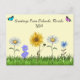Borboletas e flores ilustradas bonito neste cartão-postal. Atualizar texto facilmente. O cartão postal é preenchido com uma caixa para o ID do cartão postal ou para adicionar o nome do fórum.