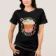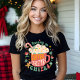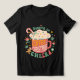 A Camisa Tri-Blend Festiva do Clube Social do Polo Norte Reindeer Festivo apresenta o texto "Correndo no café e na alegria natalícia" na moderna tipografia vermelha e verde com uma caneca festiva de café, canas doces e pessoas de pão-doce. Perfeito para presentes de Natal, festas de Natal e festas de Natal, aniversários e muito mais. Criado pelo Evco Studio www.zazzle.com/store/evcostudio