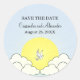 Correspondência elegante e encantadora feita no céu Salve os adesivos de Data que apresentam um céu madrugada com um brilho de sol enfiado em nuvens lisas e uma pomba branca bonito voando. Estes adesivos únicos são uma escolha sofisticada para deixar amigos e familiares saberem que reservam a data de casamento escolhida. Fácil de personalizar, basta adicionar os detalhes do dia especial do casamento nos campos de texto fornecidos. Clique no botão "Personalizar a TI" para encontrar opções adicionais de personalização.