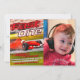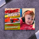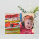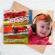 Comece seus motores e corra até a linha de chegada para celebrar o primeiro aniversario do seu bebê. Este convite único foi desenhado digitalmente para ilustrar um carro muito rápido em um concurso de corridas sem que ninguém possa alcançar
