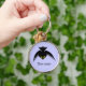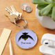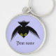 Este chaveiro bonito apresenta uma imagem de estilo de desenho animado de um corvo. O corvo é preto com olhos amarelos e tem as asas esticadas. O fundo é azul. Há um texto personalizável no estilo antigo preto debaixo do corvo. Isso permite que você adicione um nome a alguém ao chaveiro e o dê como um dom personalizado fantástico.