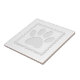 Desenho da pata de cachorro recortada de um selo. Imagem digital.