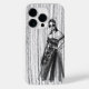 Esta é uma ilustração na moda a preto-e-branco que apresenta uma mulher envenenada num vestido dramático, fora do ombro, com embelezamentos florais intrincados e uma capa brilhante e fluente. O fundo tem uma textura vertical impressionante, acrescentando uma sensação de profundidade e movimento