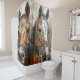 "Companheiros Majestosos" A imagem captura um momento pungente entre dois cavalos majestosos, suas cabeças fechadas em uma exibição serena de camaradagem equina. O cavalo à esquerda, com seu rico casaco castanho e manchas brancas, contrasta lindamente com seu companheiro, cujo casaco de tom alaranjado brilha contra o pano de fundo do abstrato. Suas pontes elaboradas, enfeitadas com embelezamentos metálicos e gemas, acrescentam um toque de elegância regal à cena. As abstrato sugerem uma fusão de charme rústico e de arte moderna, destacando a ligação entre eternos compartilhada por estas criaturas nobres.
