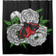 Ilustração vetorial desenhada à mão da mariposa cinabar sobre um buquê de flores de pénia