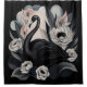 A graceful black swan is poised among soft white and peach silk flowers, creating a striking balance of contrast and delicacy. The contemporary subtle palette of light black, grey, soft peach, and white flows harmoniously.