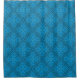 Esta cortina de chá apresenta um design único e cativante. O padrão usa vários tons de azul e lacre, que, repetidos, formam uma forma que se assemelha a um trevo de pétala pontiagudo. Isto cria um olhar visualmente interessante e dinâmico.