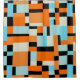 Um padrão abstrato de repetição original composto por formas retangulares em um palete de cinco cores com preto. Esse padrão foi originalmente desenhado à mão e, embora vetado, as formas retêm sua irregularidade natural. Criar um efeito exato, mas natural.