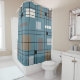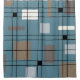 Um padrão moderno de abstrato do século médio com linhas pretas e formas quadradas e retangulares coloridas em azul e marrom.