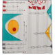 Cortina de Chá Moderna do século médio inspirada no período do médio. Desenho abstrato de triângulos, retângulos, círculos e linhas sobre um fundo castanho claro com um padrão de linhas.