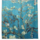 Esta cortina de chá mostra a bela pintura, Almond Blossoms, que foi pintada por Vincent Van Gogh em 1888. Ele apresenta um fundo azul lacrado com cor chata com flores floridas em tons brancos de amêndoa.