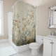 This shower curtain features an ethereal, meadow-inspired landscape rendered in a delicate watercolor style. Stems of wildflowers and clover-like foliage stretch upward against a warm linen-textured background, creating a tactile, fabric-like appearance.