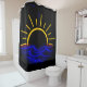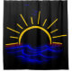 Esta trabalho de arte representa a tranquilidade da natureza, com pássaros em belos voos flutuando acima de um sol brilhante, acima de uma delicada ondulação de ondas azul-nebulosas do oceano, fluindo sem falhas para uma canvas negra profunda, criando uma composição natural da cortina do chá de ambiente no mundo.