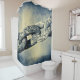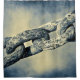 Quatro elos de uma velha e enferrujada corrente. Imagem estilizada em preto e branco. Fechado, ocupado, sem dentro. Cortina de chá para decorar seu banheiro por diversão e bom humor